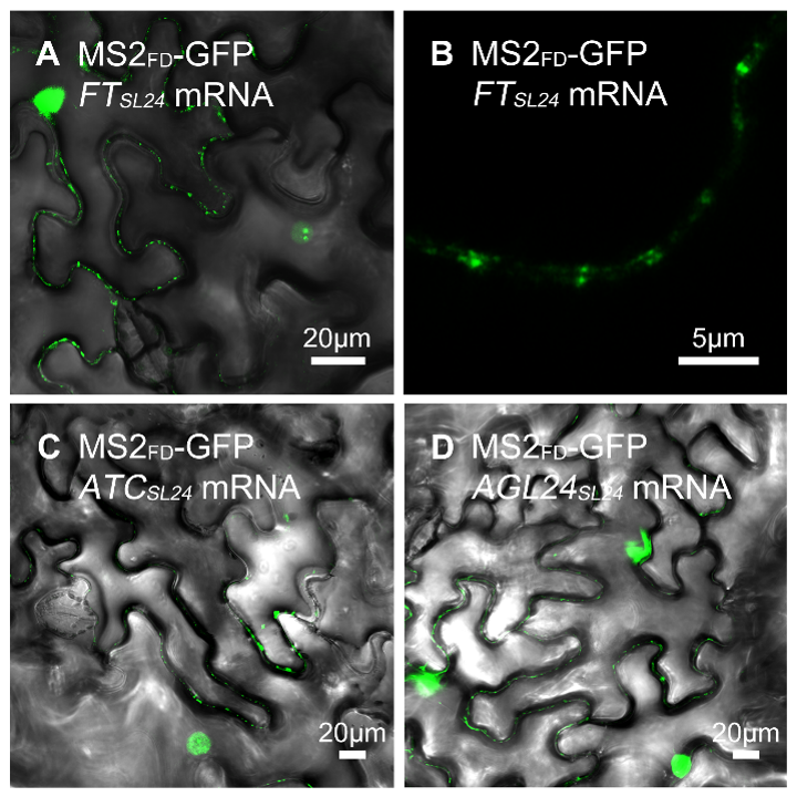 發稿時間:為了因應環境的變化,植物演化出精細的機制偵測環境的變化並將這些訊息轉化成訊息核糖核酸 (mRNA),經由篩管進行長距離運輸至頂芽來調控花芽的形成。然而,移動型訊息核糖核酸 (mobile mRNA) 是如何進行長距離運輸目前仍不明瞭。本所余天心實驗室利用活細胞影像 (live cell imaging) 技術,發現移動型訊息核糖核酸會選擇性的運送至原生質絲 (plasmodesmata) 以進行細胞間的運輸。這項觀察揭示了在細胞內往原生質絲的運送,是移動型訊息核糖核酸能夠進行長距離運輸的重要步驟。此外,本研究所建立的活細胞影像觀察技術,也具有觀察各類核糖核酸細胞內運送之應用潛力(Luo et al., Plant Physiol., 2018)。