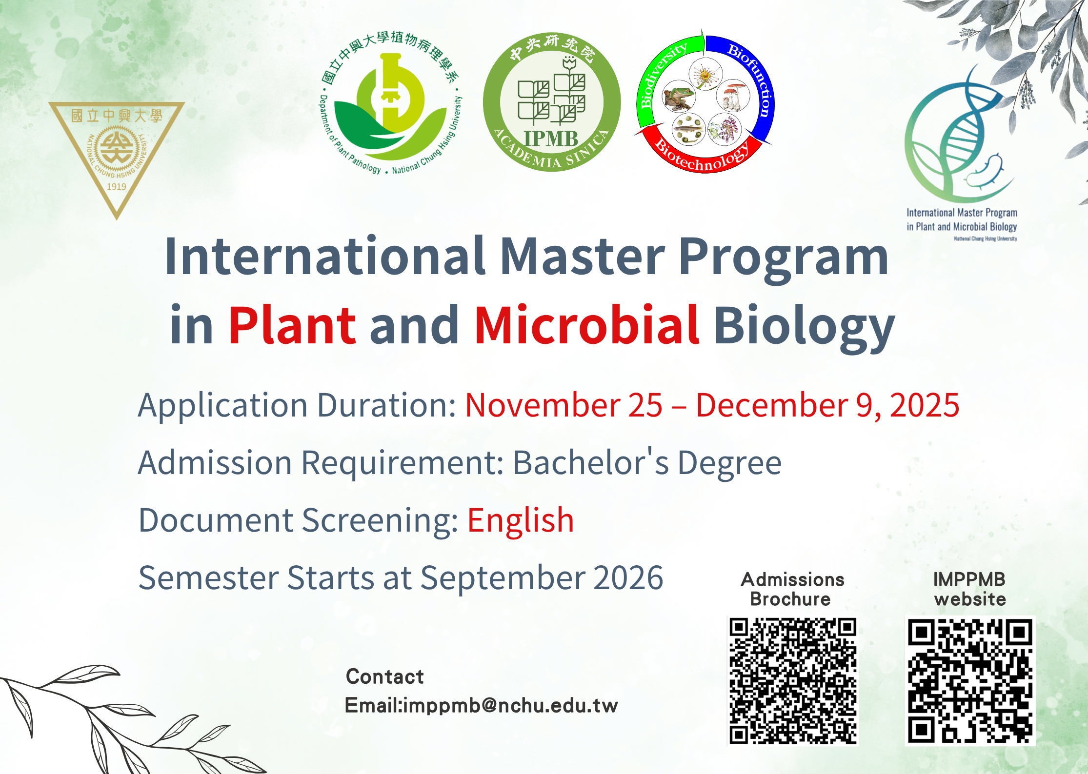 - 2026 IPMB-NCHU International Master Program in Plant and Microbial Biology (IMPPMB) Admissions Open